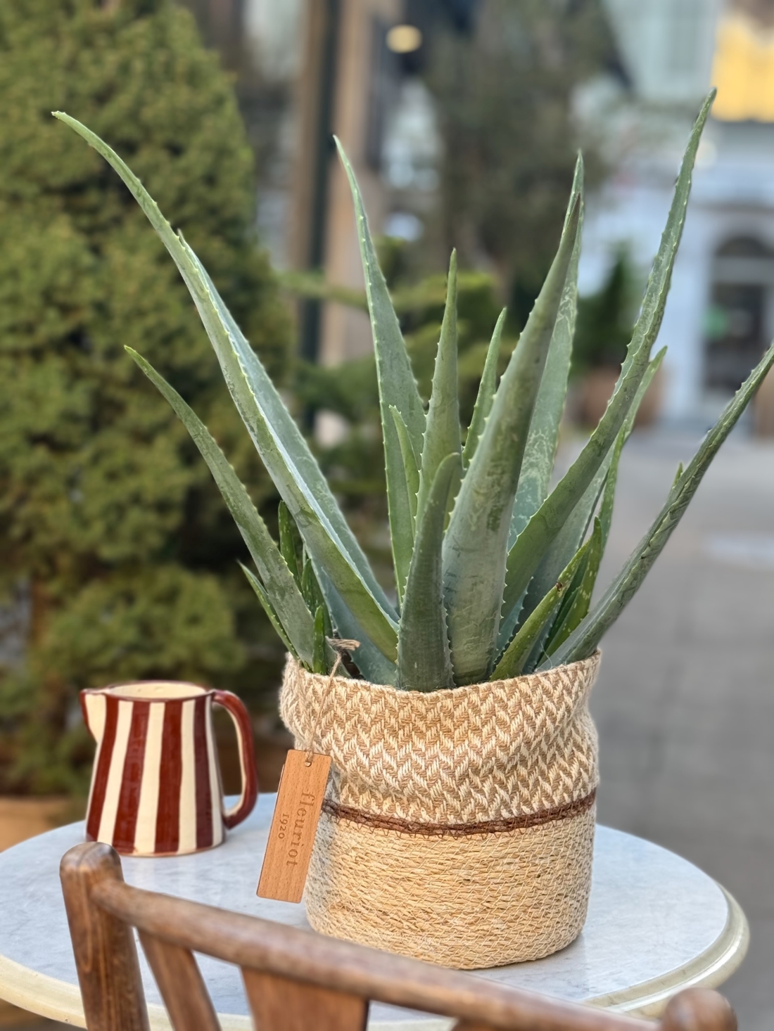 L’Aloe vera est une plante d’intérieur très décorative, à la fois facile d’entretien et peu exigeante tout au long de l’année. L’aloé vera réclame une bonne lumière mais redoute le soleil direct qui favorise l’assèchement de la plante.Une exposition trop ensoleillée pourrait en effet assécher rapidement le feuillage et le faire jaunir de manière durable. La température d’une maison ou d’un appartement est idéal car elle doit être comprise en 18 et 21° toute l’année. Arrosage au printemps/été doit être régulier mais modéré, une fois par semaine environ. L’idéal étant d’arroser lorsque le sol est sec en surface. N’attendez pas trop longtemps, surtout lorsqu’il fait chaud, car la plante pourrait en souffrir. Préférez une eau à température ambiante plutôt que trop fraîche car la différence de température peut provoquer un stress important pour votre aloé vera. Arrosage à l’automne/hiver Réduisez légèrement les arrosages durant la période de repos végétatif. Attendez que le sol soit sec sur quelques centimètres pour arroser de nouveau et avec une eau à température ambiante. Vous reprendrez l’arrosage au printemps lorsque la plante retrouvera de la croissance. De mai à septembre, vous pourrez sortir la plante sans aucun problème mais n’hésitez pas à la rentrer le soir si les nuits sont fraîches. Merci de bien noter que les plantes (avec de la terre) ne sont pas acceptées dans les hôpitaux suisses. Nous vous conseillons de choisir un article dans une des catégories suivantes : Bouquets ronds, arrangements, bouquets de roses, bouquets longues tiges.